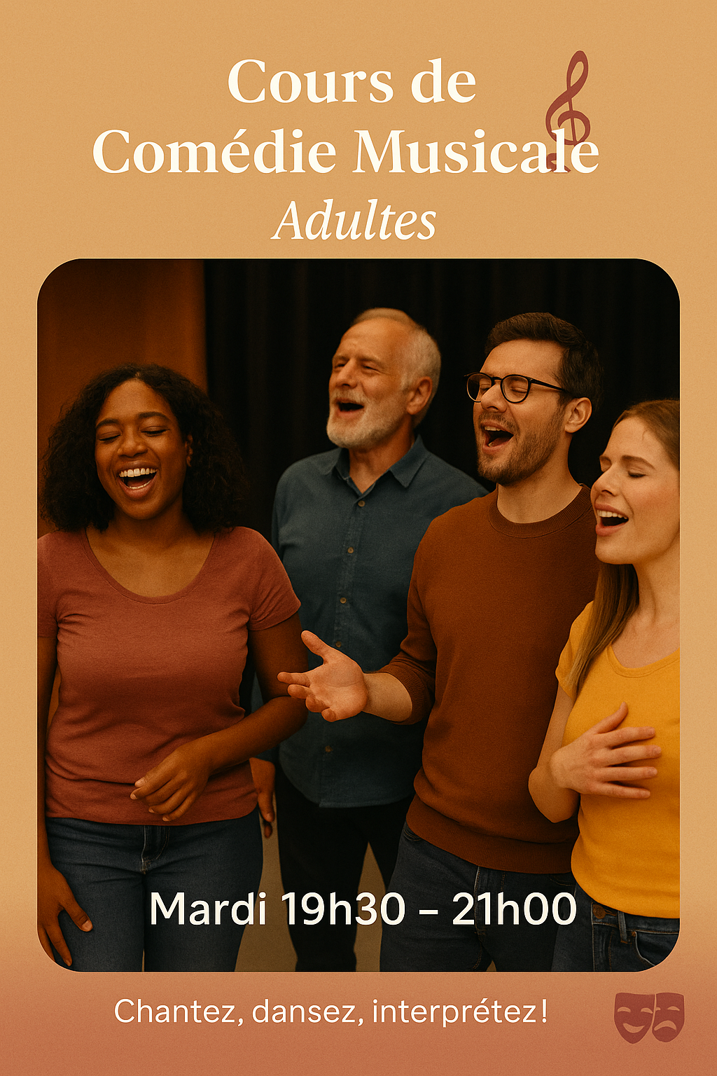 Envie de chanter, de danser, de jouer la comédie… ou simplement de vous amuser en groupe ? Ce cours de comédie musicale est ouvert à toutes et tous, sans prérequis. Que vous soyez débutant·e ou que vous ayez déjà pratiqué, vous êtes les bienvenu·es !